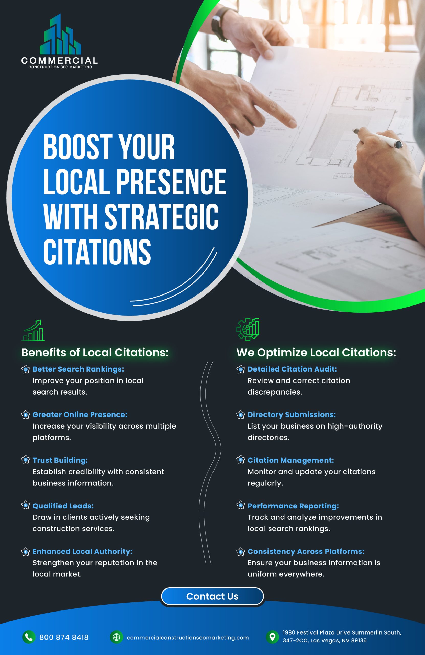 - Tap into Proven Expertise: Leverage our experience and knowledge in building effective citation profiles for commercial contractors.
